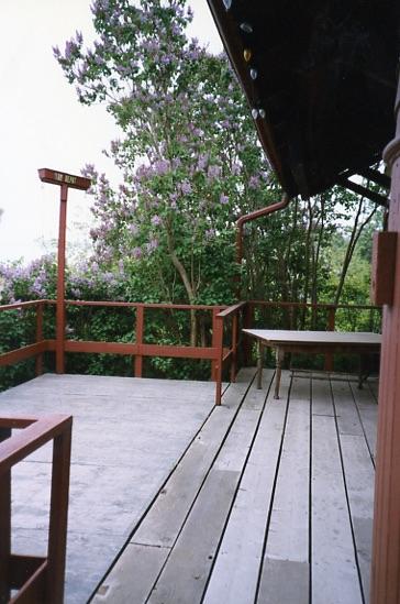 | Description: | This photograph is of the east facade of The Depot restaurant. The picture shows the east porch where dinners would have been able to sit outside and eat. They would have been surrounded by lilacs. The photograph was most likely taken in the spring.